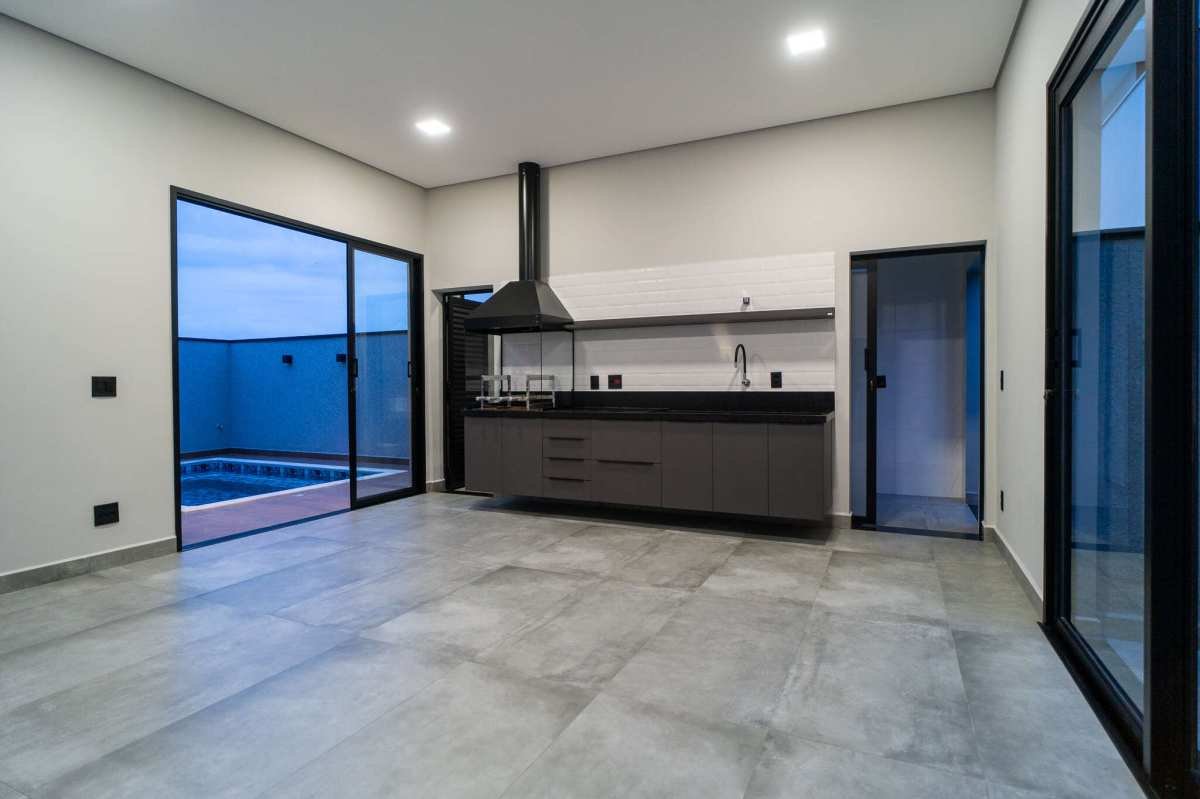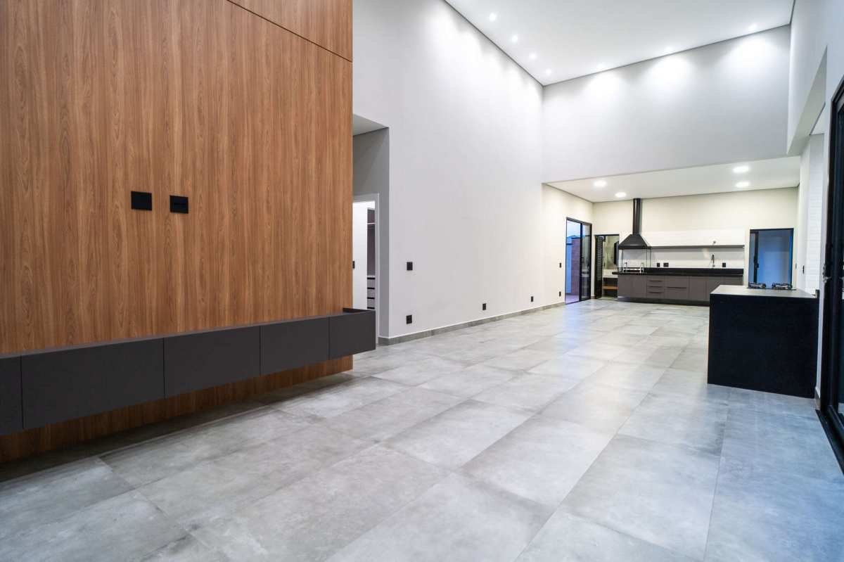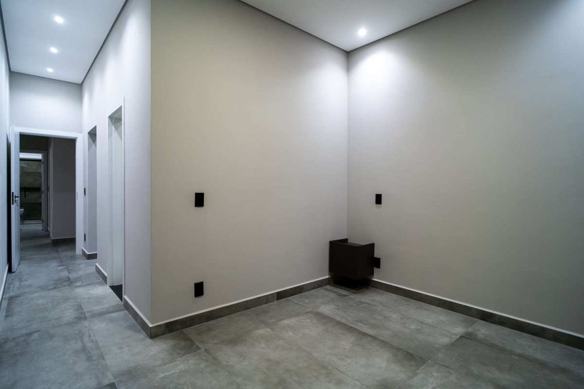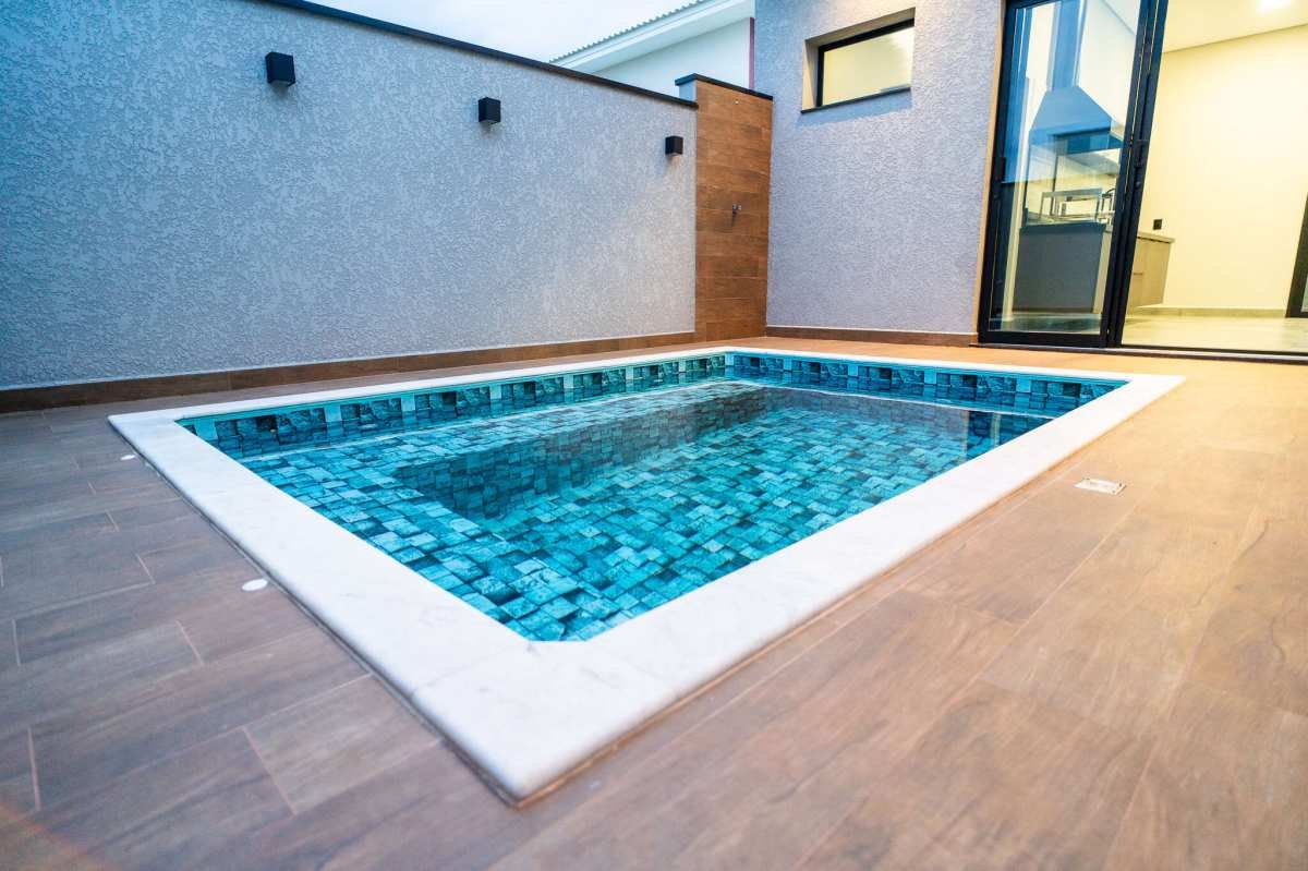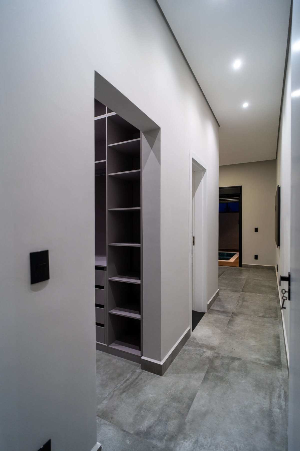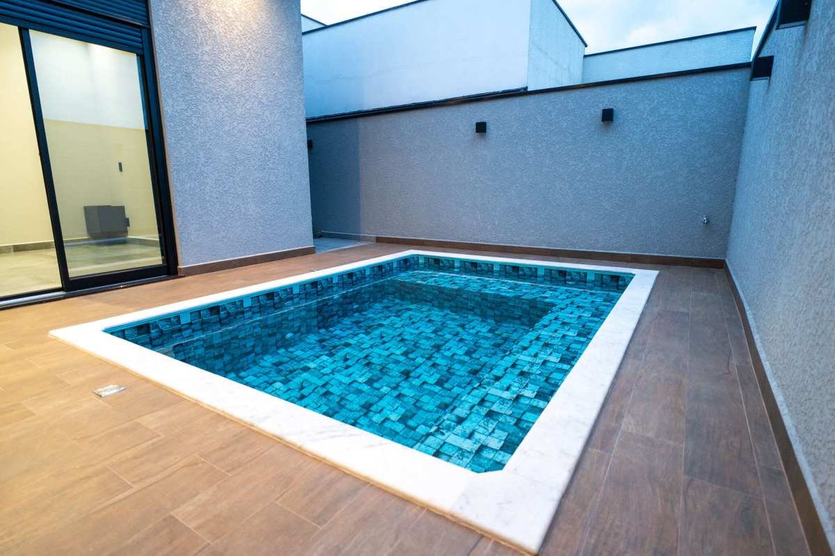 Casa térrea com sala dois ambientes, cozinha, despensa, área de luz, lavabo, escritório, espaço gourmet, 3 suítes sendo uma com closet e quintal com piscina.