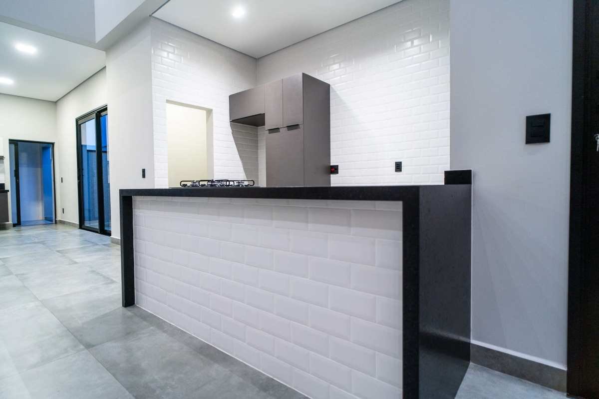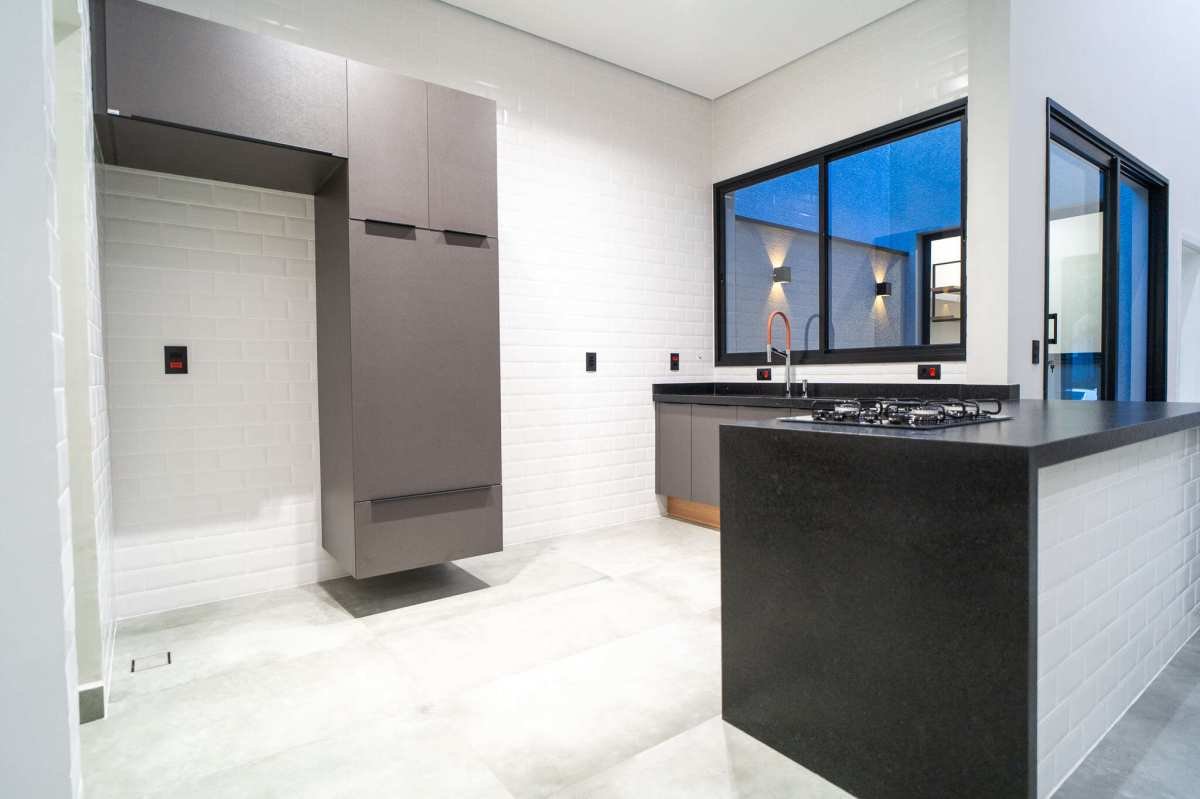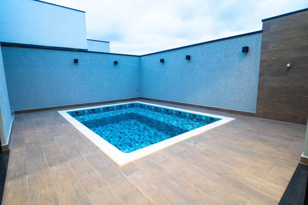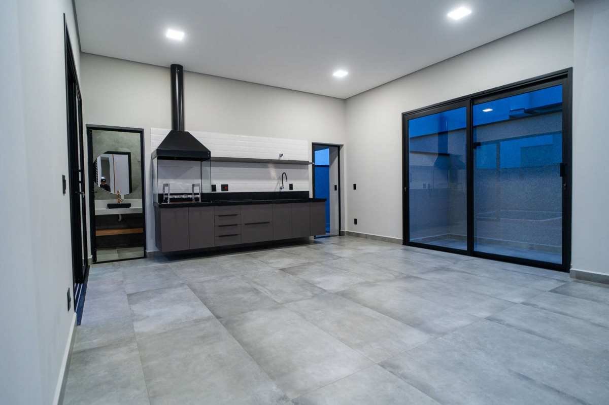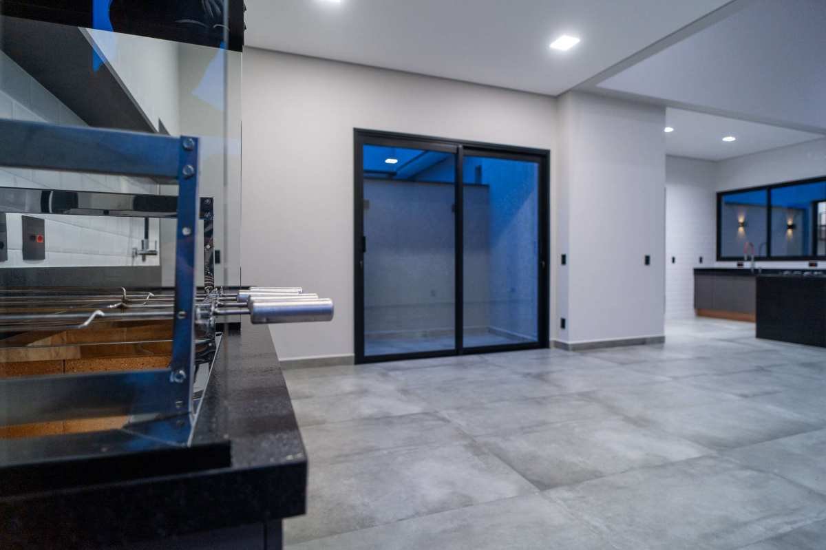 Casa térrea com sala dois ambientes, cozinha, despensa, área de luz, lavabo, escritório, espaço gourmet, 3 suítes sendo uma com closet e quintal com piscina.