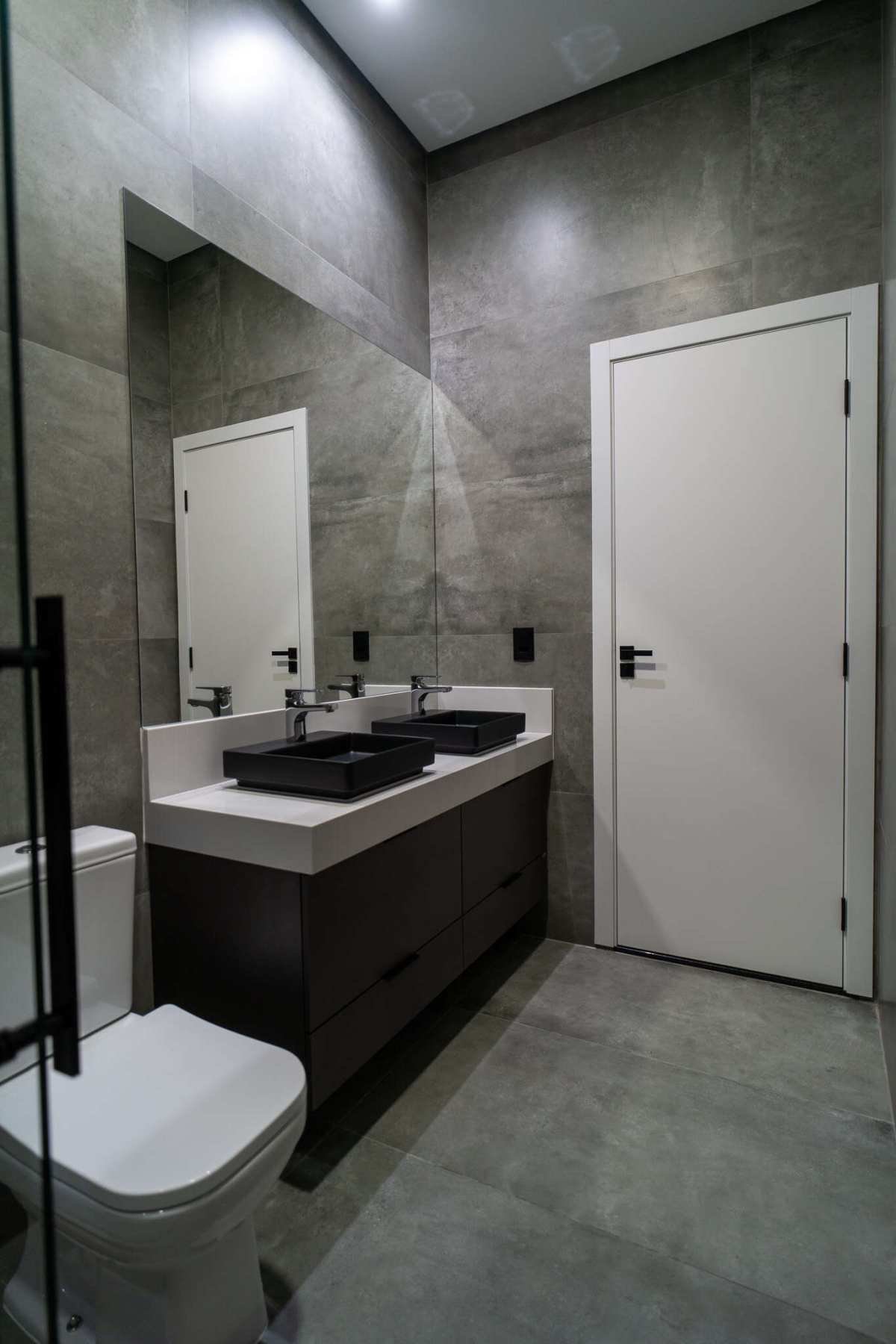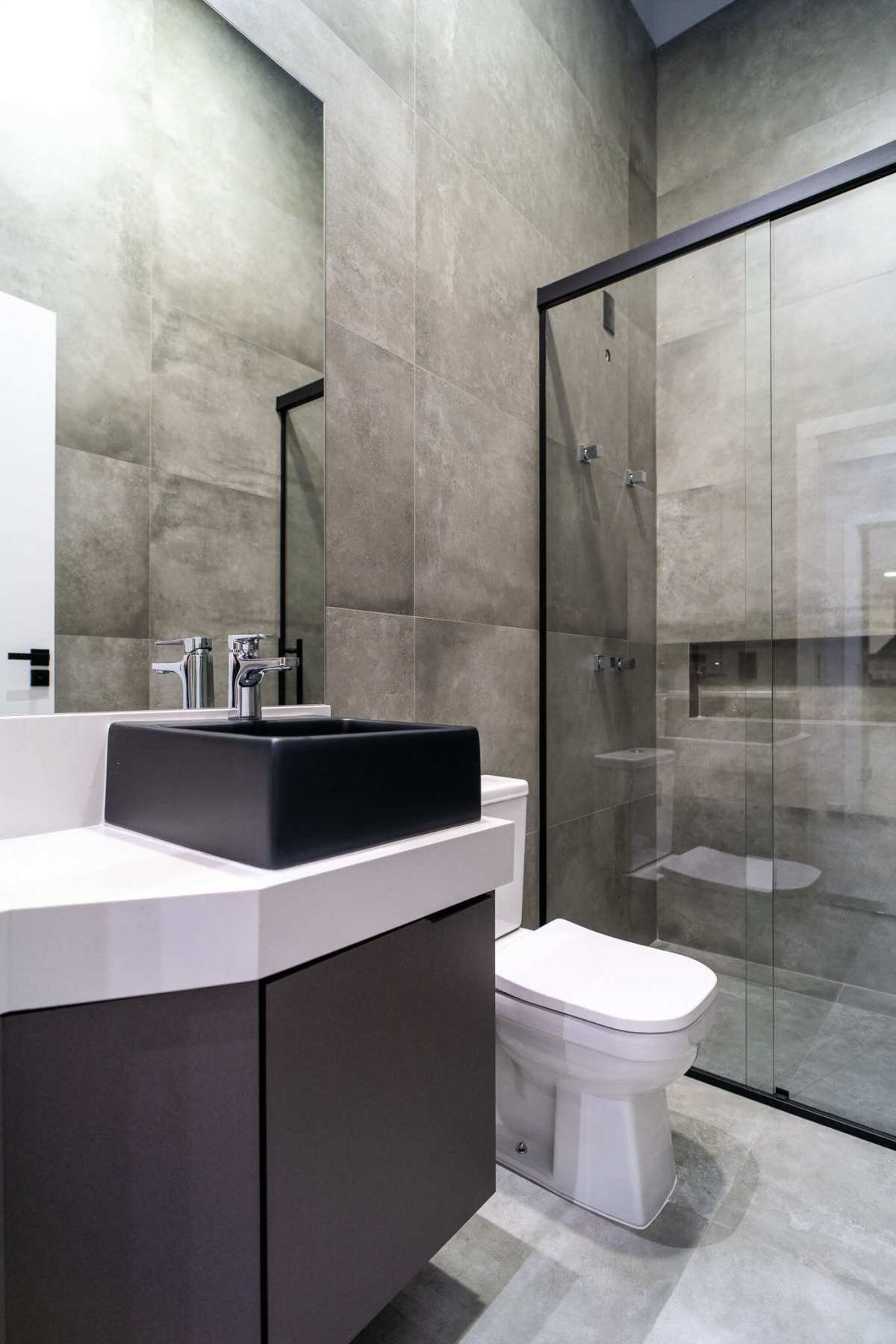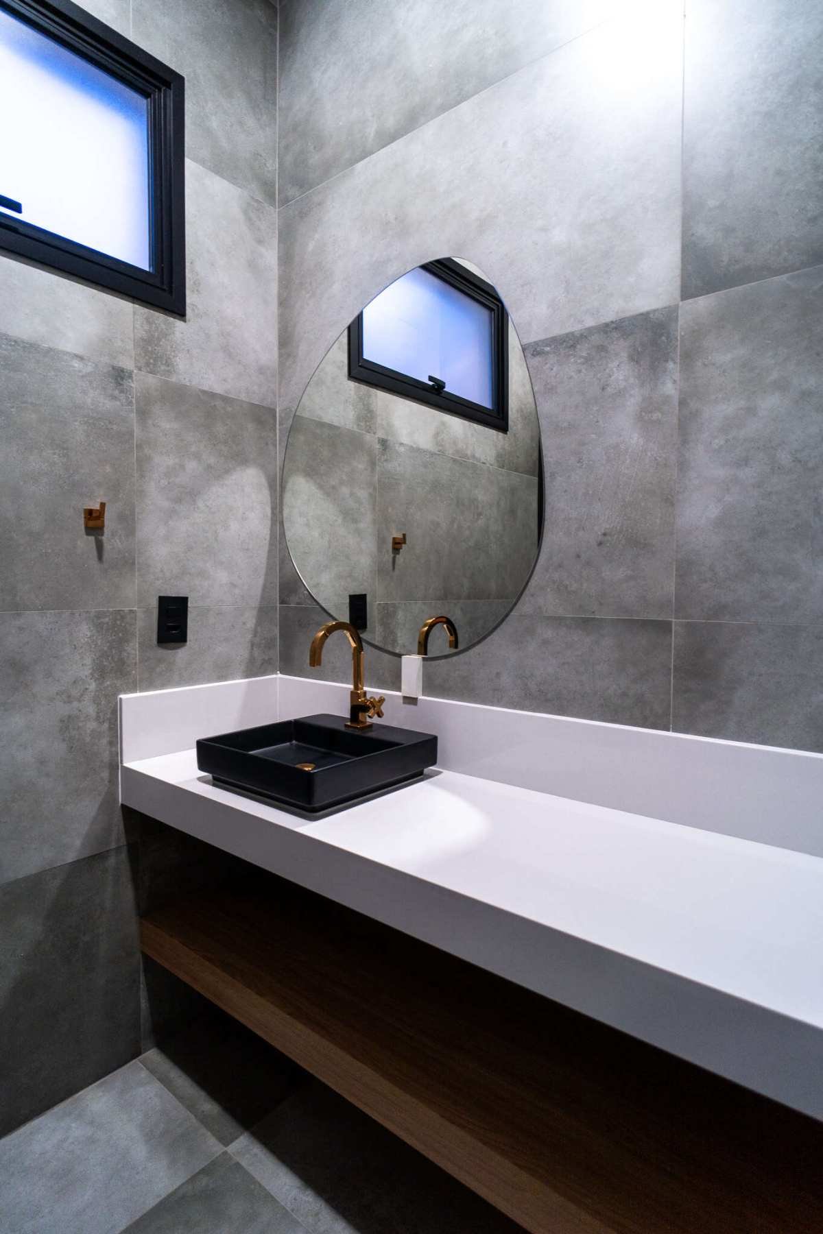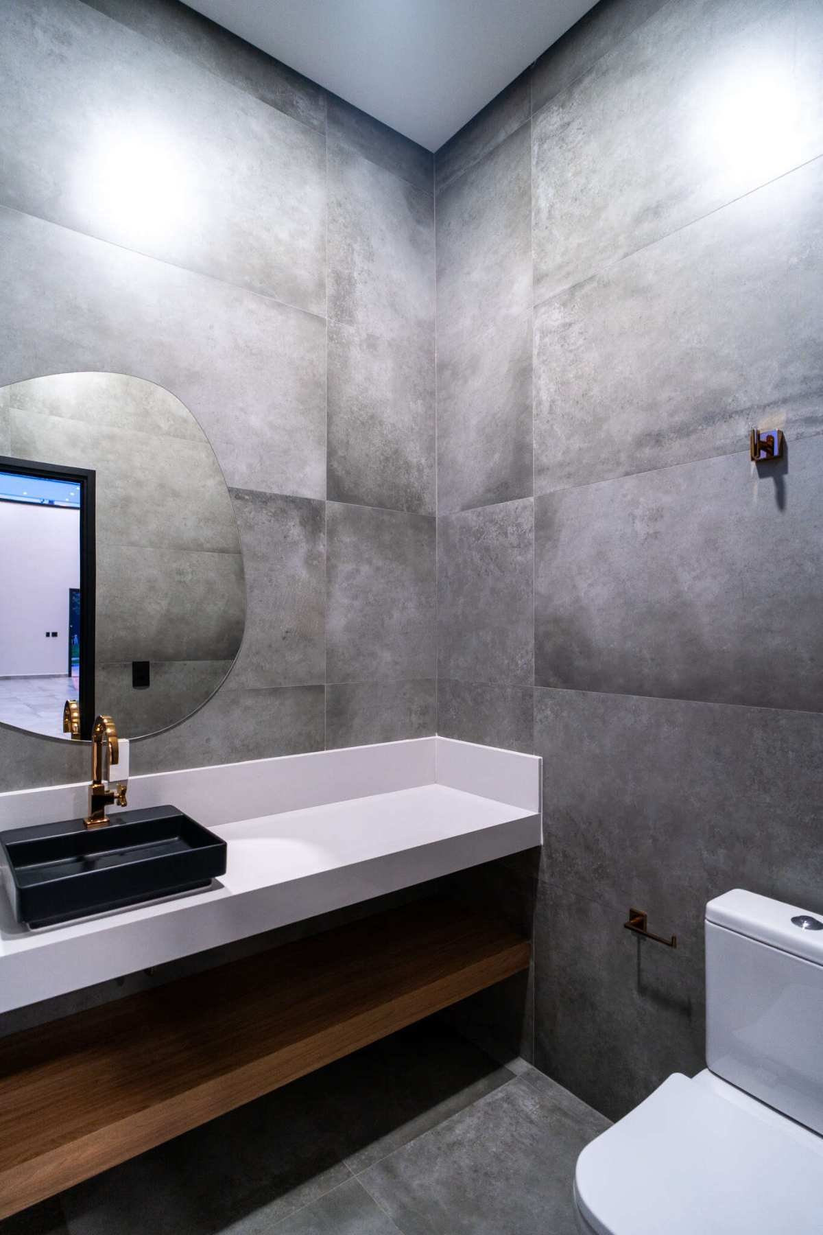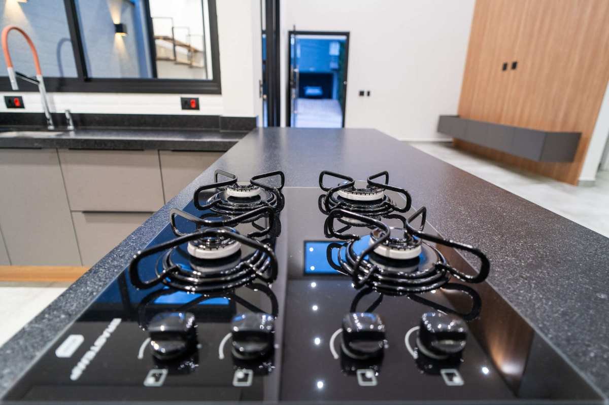 Casa térrea com sala dois ambientes, cozinha, despensa, área de luz, lavabo, escritório, espaço gourmet, 3 suítes sendo uma com closet e quintal com piscina.